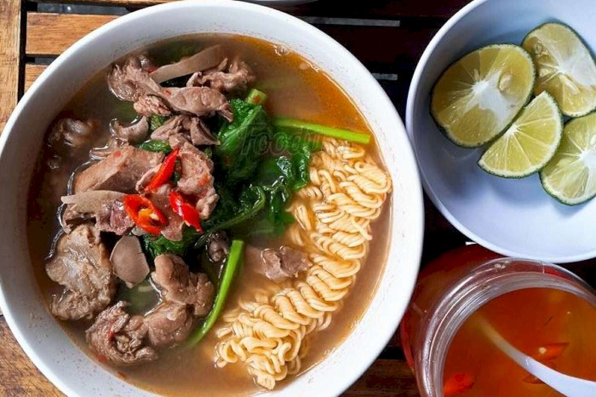 Mì thịt bò là món ăn rất hợp để ăn kèm với đa dạng các loại rau, gia vị nồng mùi hương cực hấp dẫn.